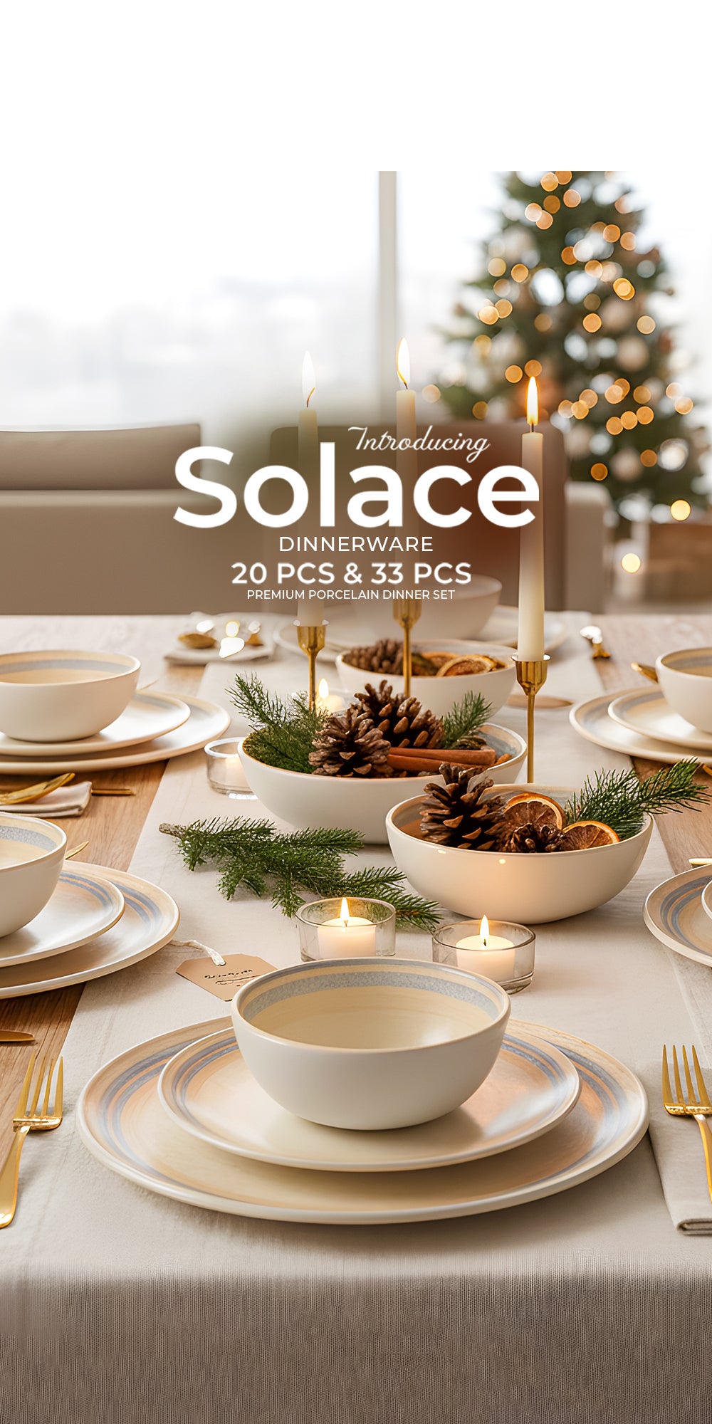 Pixel Collection Solace Fine Porcelain Dinnerware Set of 33 – Soothing Earth-Toned Elegance for Everyday Dining